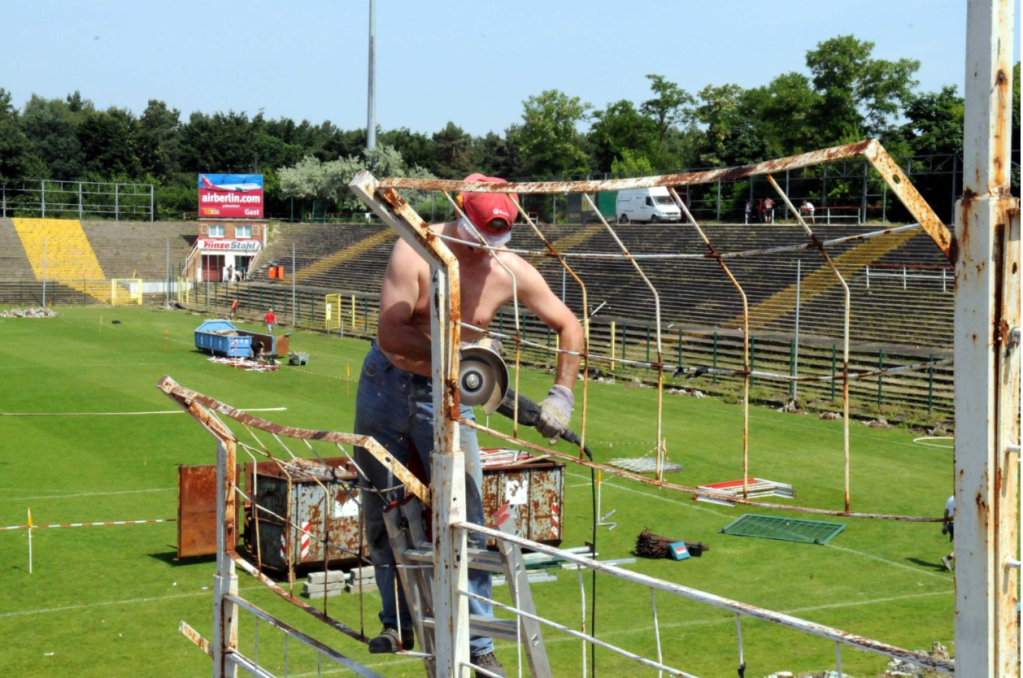 A fan volunteer gets to work dismantling the old fences during the renovation in 2008. © Matthias Koch